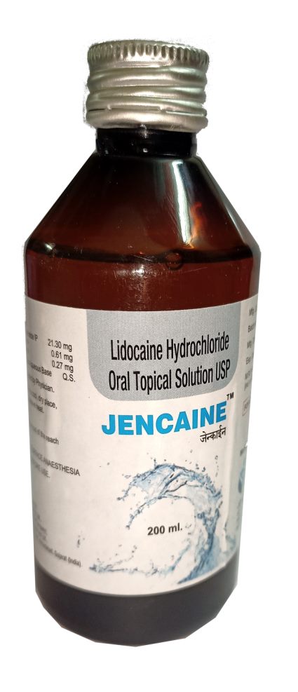 JENCAINE contains Lidocaine HCl which is a local anesthetic agent and is administered topically. Lidocaine is indicated for the production of topical anesthesia of irritated or inflamed mucous membranes of the mouth and pharynx. It is also useful for reducing gagging during the taking of X-ray pictures and dental impressions.