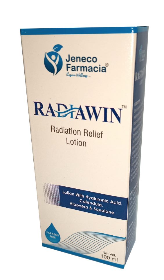 Sometimes radiation therapy can cause the skin on the part of body receiving radiation to become dry and peel, itch and turn red or darker. The skin may look sunburned or become swollen or puffy. RADIAWIN lotion is useful in such cases. It helps to reduce dryness, itching, swelling and redness. Lotion has ingredients are with antifungal, anti-inflammatory and antibacterial properties that make it useful in healing wounds also.